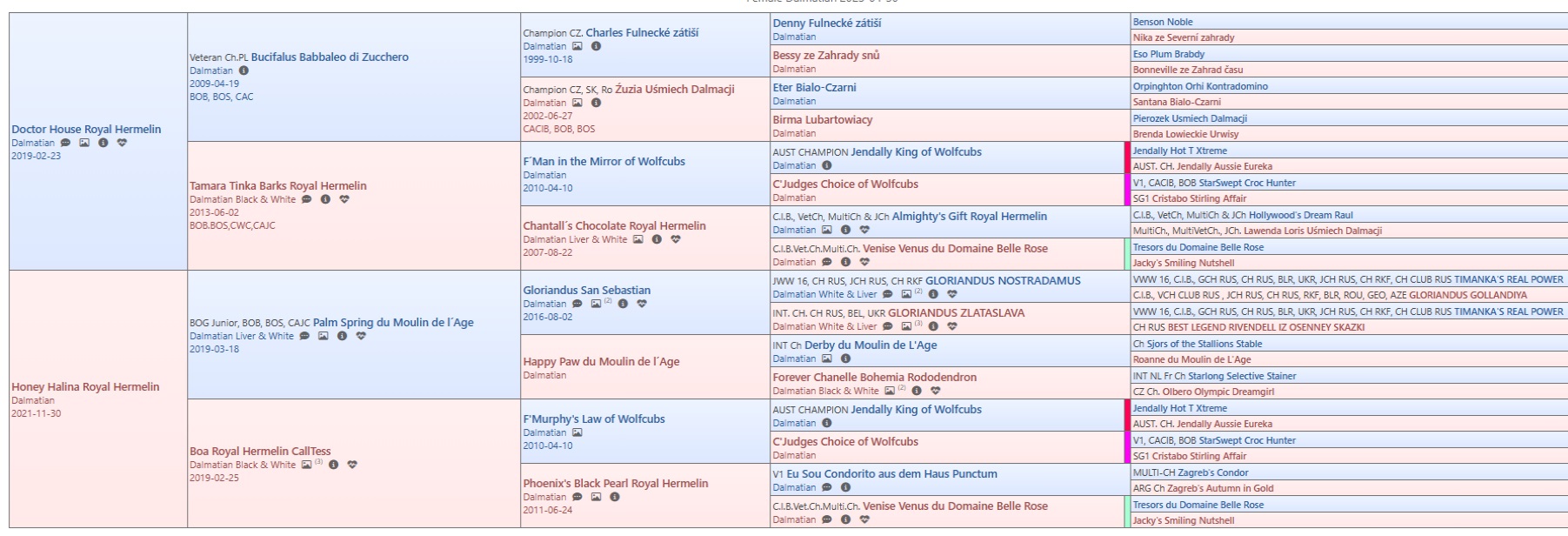 Bereme záznamy na černě tečkovaná štěňata po rodičích: